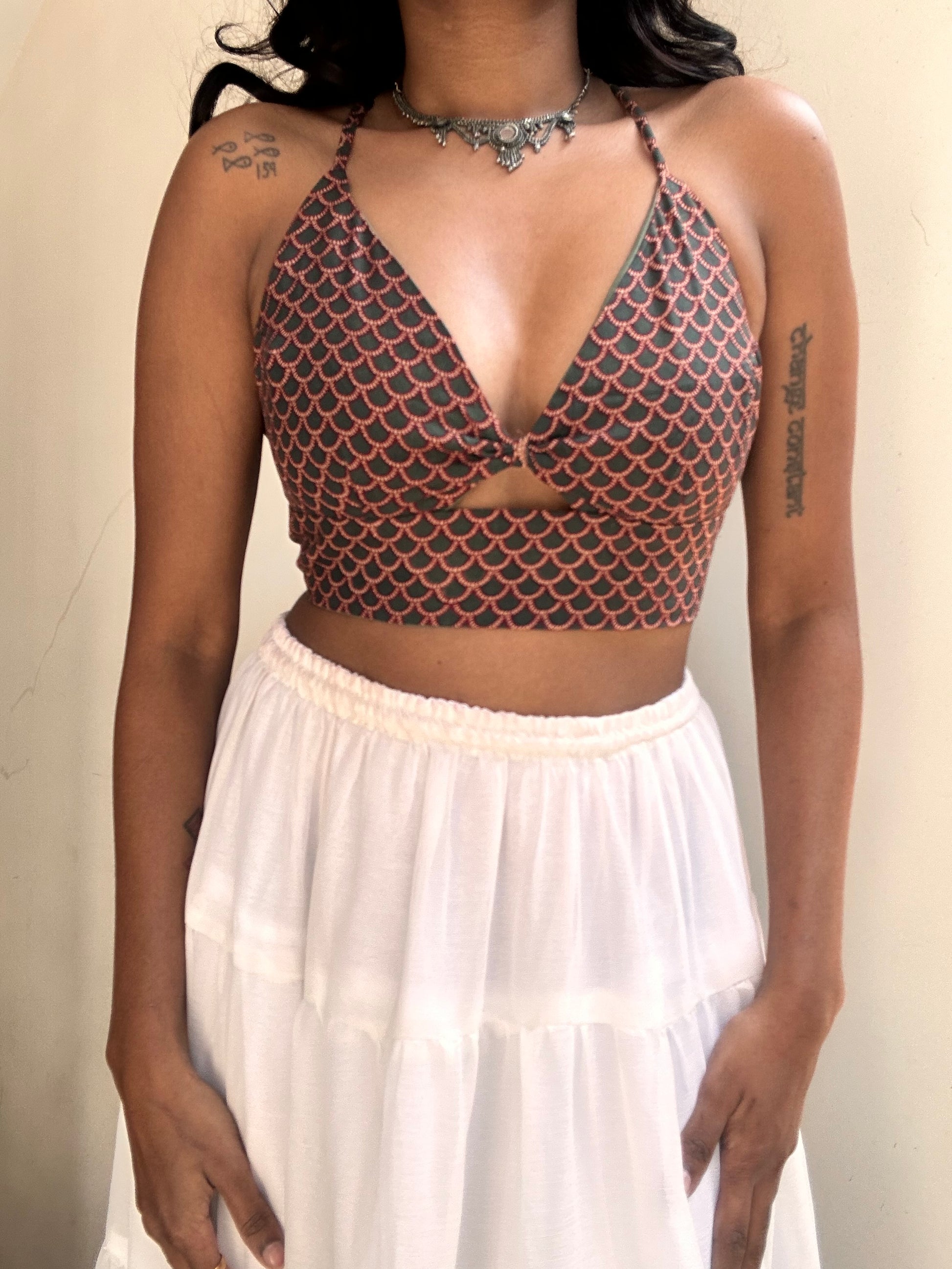 Tiny top, major energy. Bella is flirty, fiery, and made to be seen. Wear her solo or let her peek through — either way, she’s bringing the heat.
