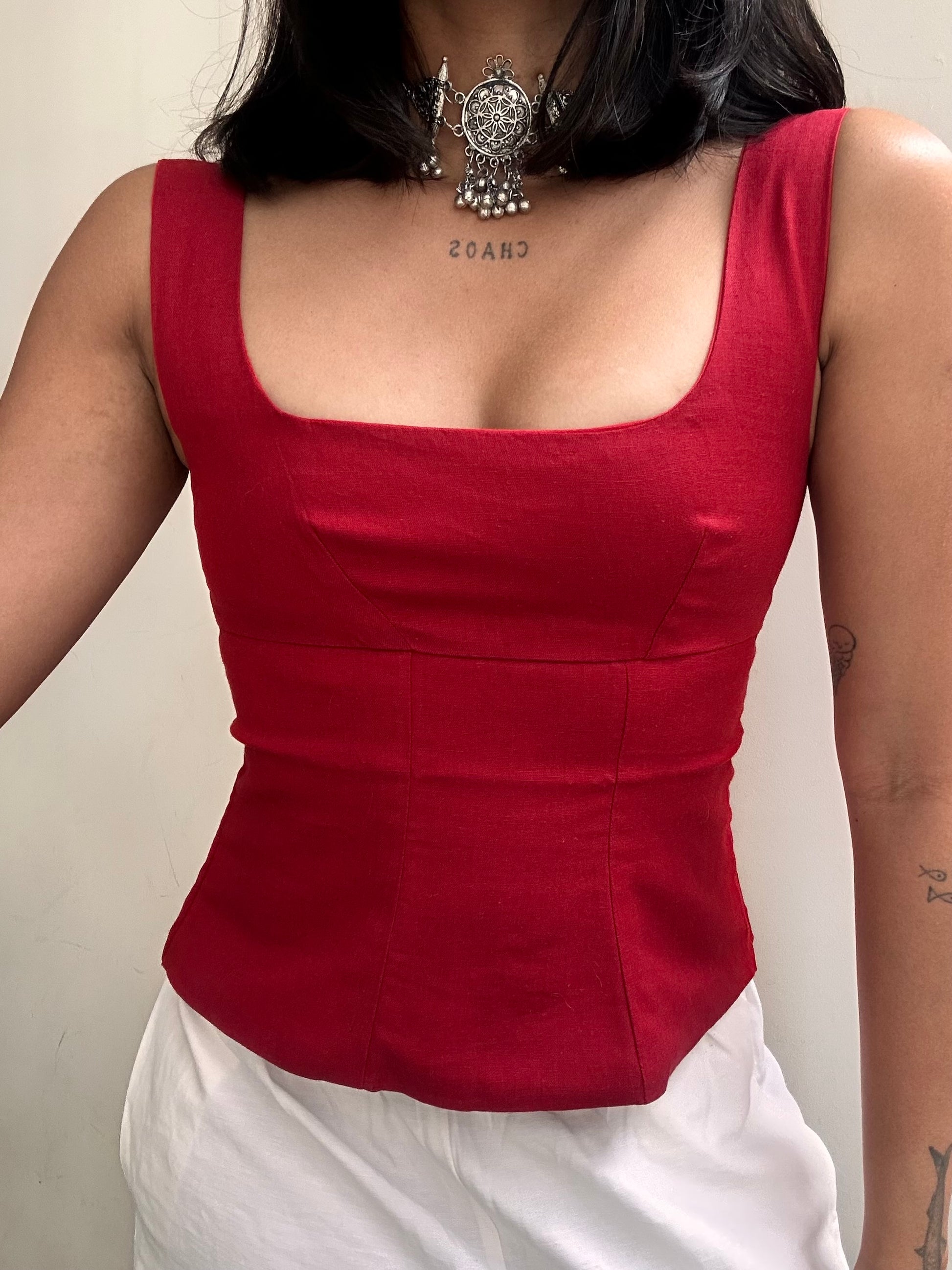 Gul is structure with a soft side—clean lines, snug curves, and a touch of bloom. She’s your not-so-basic basic, turning everyday plans into moments worth dressing up for. A top that hugs just right and speaks in quiet confidence.