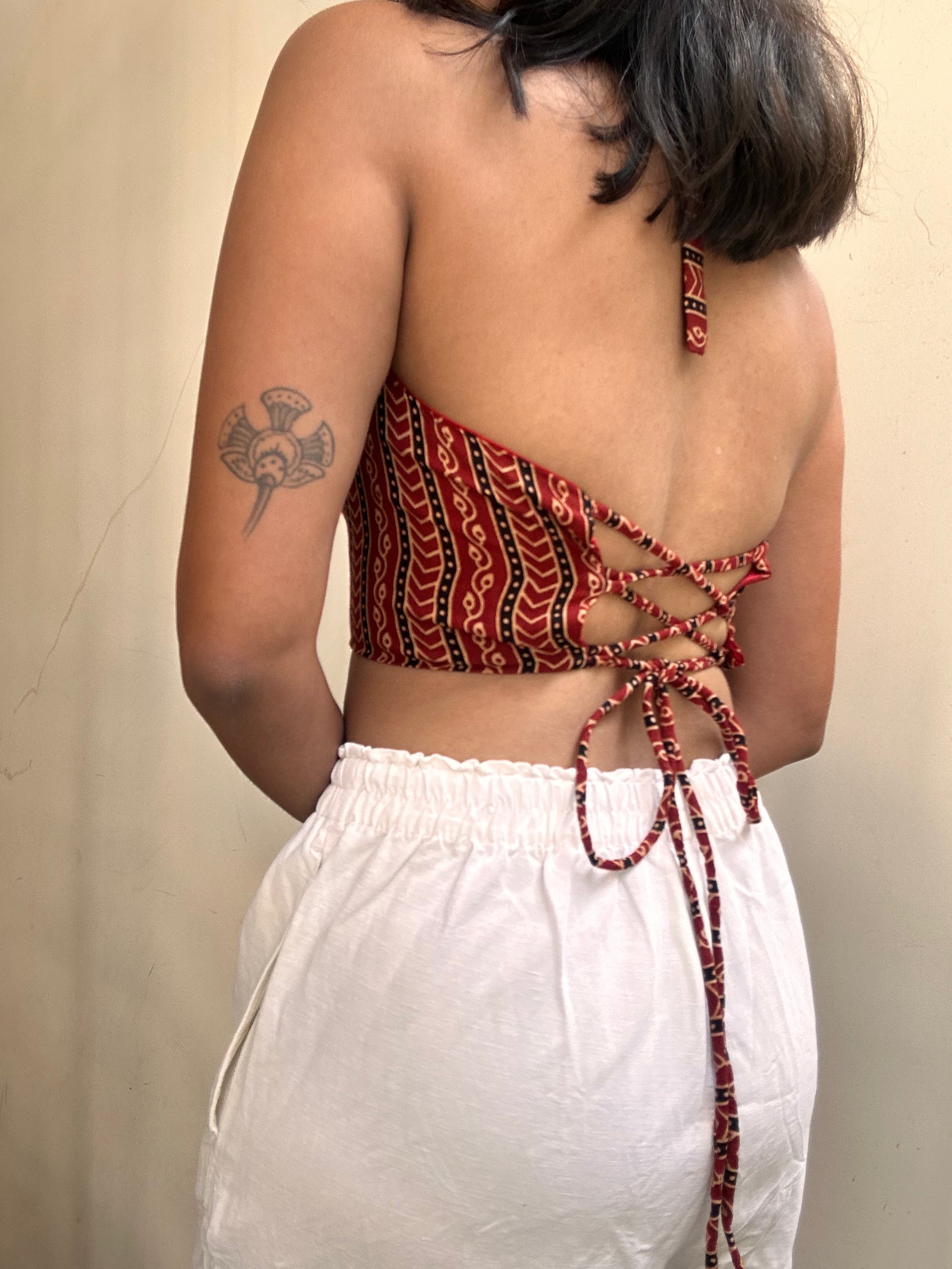 Enclosure: Tying at neck, Tie-up back with criss cross pattern