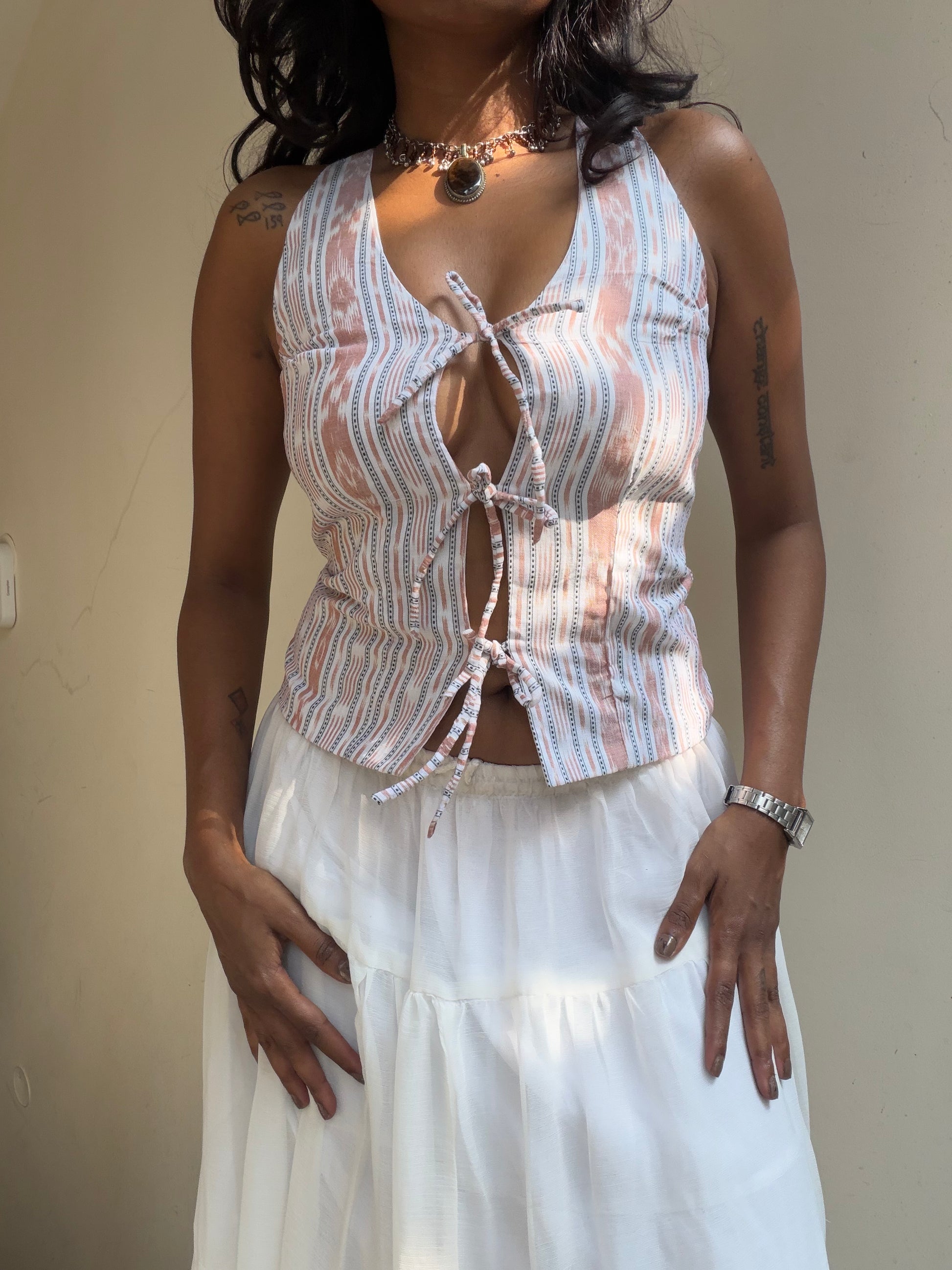 Kaira ties it all together — literally. Style her as a vest or a top, she will bring the look together.